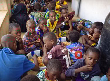 En 2024, nous avons mis en place une cantine gratuite afin de soutenir les familles et d’attirer plus d’enfants à l’école. Les denrées proviennent de l’épicerie du village et la cuisine est faite par la coopérative des femmes.
